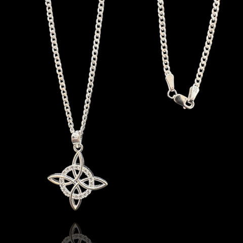 9.25 Silver witches knot Pendant. This Pendant does come with a chain 18” curb link chain.